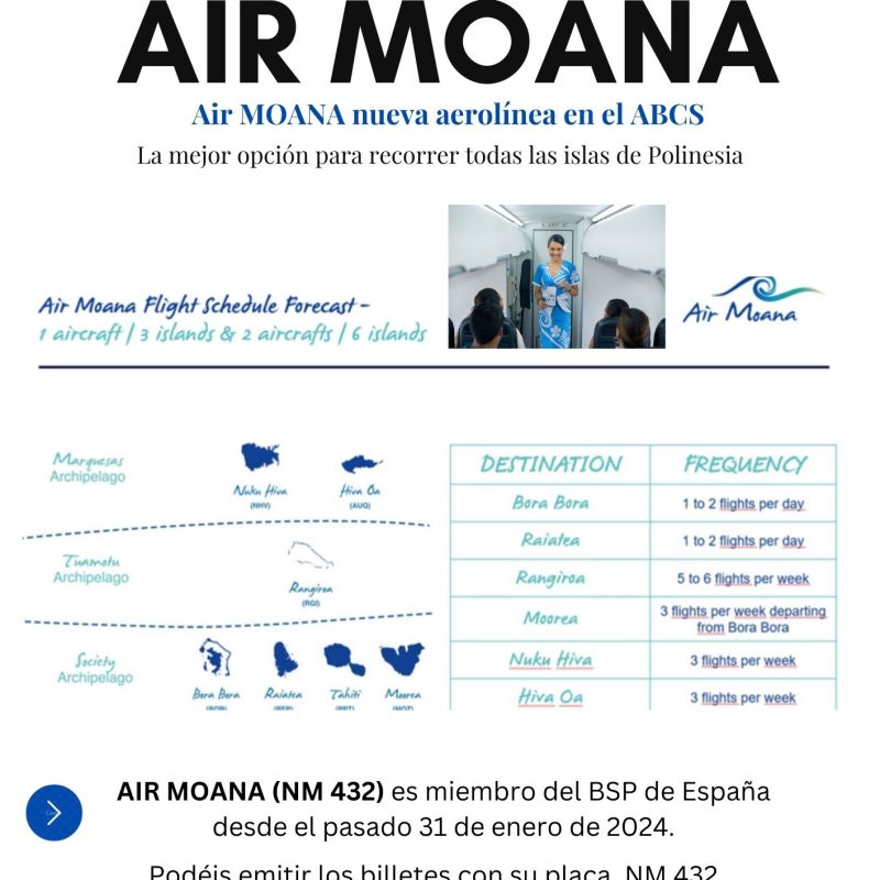 APG SPAIN somos BSP administrador para Air Moana en España.